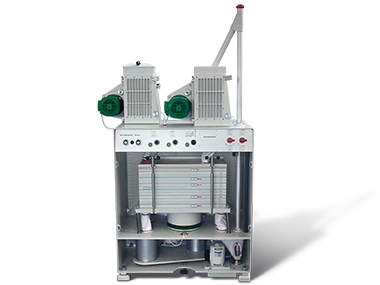 兩套平篩上下疊放,根據(jù)粒度分離顆粒,皮磨粉和心磨粉可以收集在一起,也可分別收集。