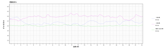 電池漿料的分散工藝的確定,初次對(duì)一級(jí)分散,即雙螺桿分散后的樣品的分散均勻性進(jìn)行分析,然后發(fā)現(xiàn)樣品的分散均勻性較差,后對(duì)分散釜后樣品的分散均勻性進(jìn)行分散,發(fā)現(xiàn)樣品的分散均勻性變化但是尚不足夠,然后對(duì)分散速度增加后分散均勻性變得更好,達(dá)到了分散均勻性的要求。具體數(shù)據(jù)如下: