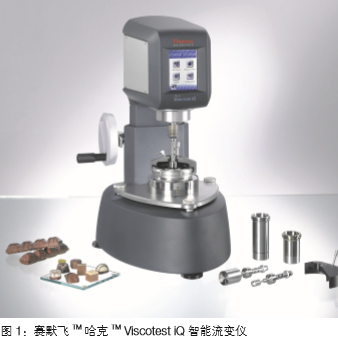 融化的巧克力的流動行為在很多情況下都是一個關(guān)鍵因 素。其生產(chǎn)運輸、灌裝、浸漬及注射等過程需要巧克力 具有非常適合的粘度及屈服應(yīng)力。同樣,最終產(chǎn)品的外 觀及口感也直接受到其粘性行為的影響。 對于巧克力生產(chǎn)公司或者以巧克力為原料的制品公司, 比如巧克力曲奇制造商來說,測試其粘度已經(jīng)成為一個 標準的質(zhì)量控制方法。 為了滿足客戶在質(zhì)控過程中快速,簡單,更加可靠的進 行粘度測試,新一代賽默飛 TM 哈克 TM Viscotest iQ 智能 流變儀(圖1)已經(jīng)問世。這臺設(shè)計獨一無二,基于質(zhì) 控應(yīng)用的儀器具有很多新的特點。比如,它的靈敏度的 高度提升保證了其可以使用更小的測量夾具,并可以節(jié) 約用戶的樣品以及溫度平衡的時間和清理時間。同時也 提高了其測量更低的剪切速率的能力,改善了其利用數(shù) 學模型進行模擬計算的可靠性,比如用卡松模型來擬合 計算樣品的屈服應(yīng)力 [1]。