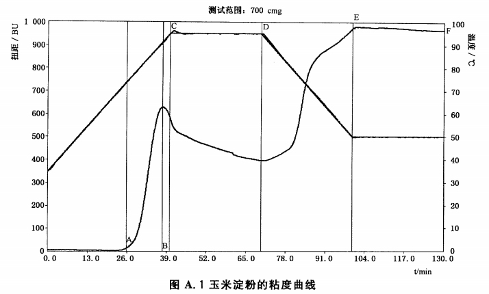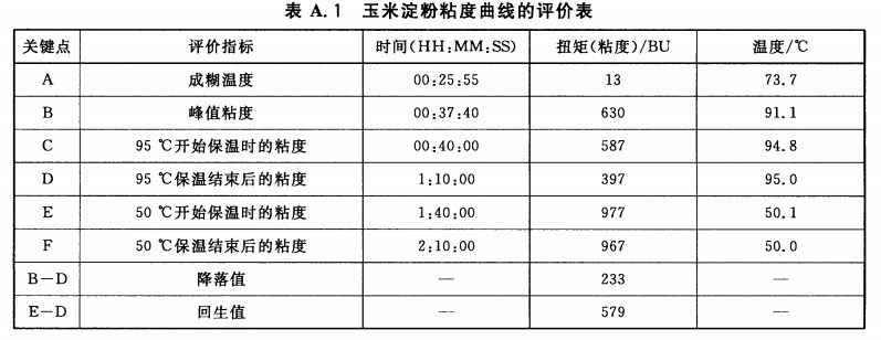 A4玉米淀粉的粘度曲線參見圖 A, 1;玉米淀粉粘度曲線的評價表參見表 A.1