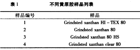 試驗(yàn)樣品均來(lái)自丹尼斯克公司格林斯德系列黃原膠,見(jiàn)表 1。