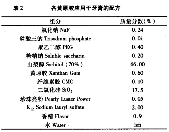 關(guān)鍵詞:黃原膠 牙膏 流變性