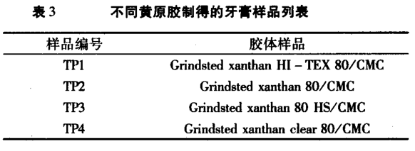 不同黃原膠制得的牙膏樣品編號(hào)見(jiàn)表 3。