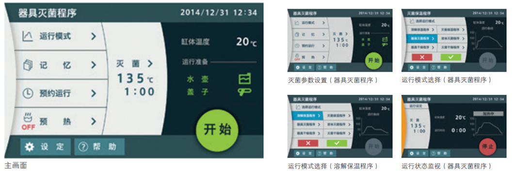 45~135℃: 45~80℃(預熱溫度)/45~60℃(保溫工程)/60~110℃(溶解工程)/105~135℃(滅菌工程) |