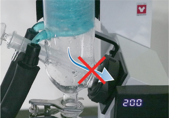 為了防止冷凝管中積留的冷凝液沿著內(nèi)壁浸入真空密封部,在冷凝管內(nèi)部的真空密封部前設(shè)計(jì)了防止積液的結(jié)構(gòu)。另外,玻璃套裝 B 考慮到加料軟管玻璃套內(nèi)側(cè)的結(jié)露,也設(shè)計(jì)了防止積液的結(jié)構(gòu)。通過防止積液流向真空部,從而提高了真空密封圈的使用壽命。