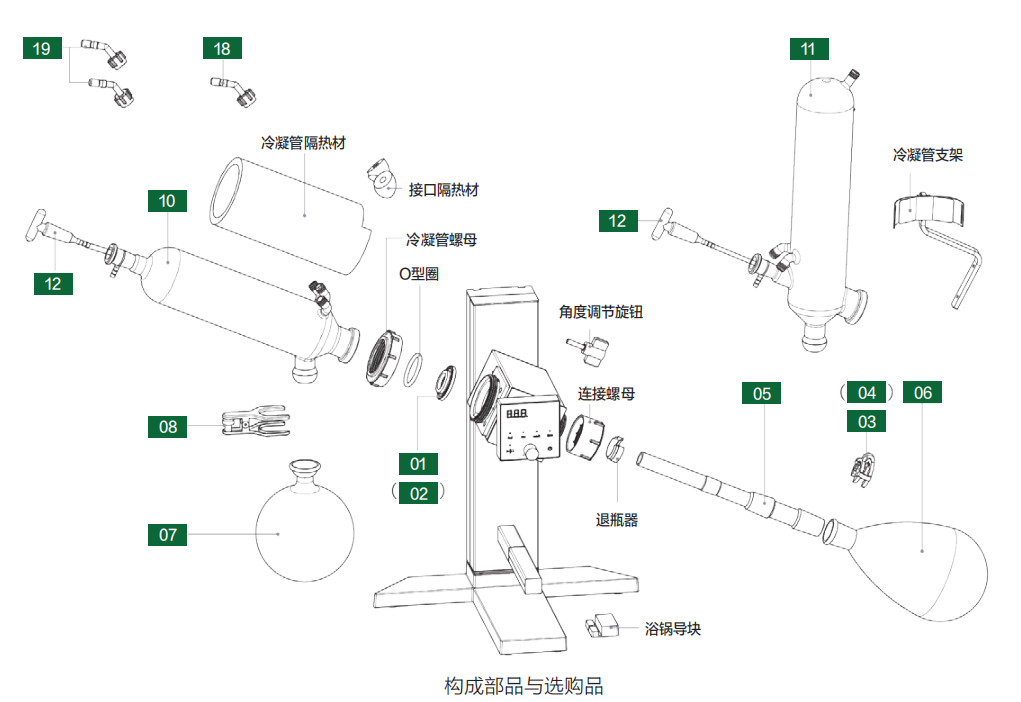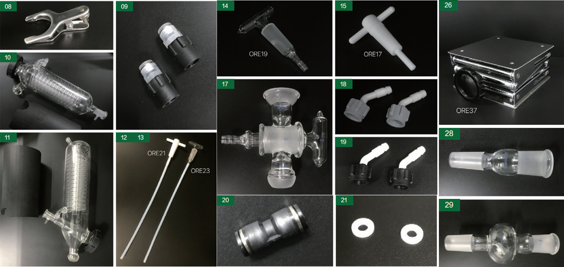 保證書、蒸餾燒瓶夾、回收燒瓶夾、真空密封圈、退瓶器(TS29用)、冷凝管隔熱材 |